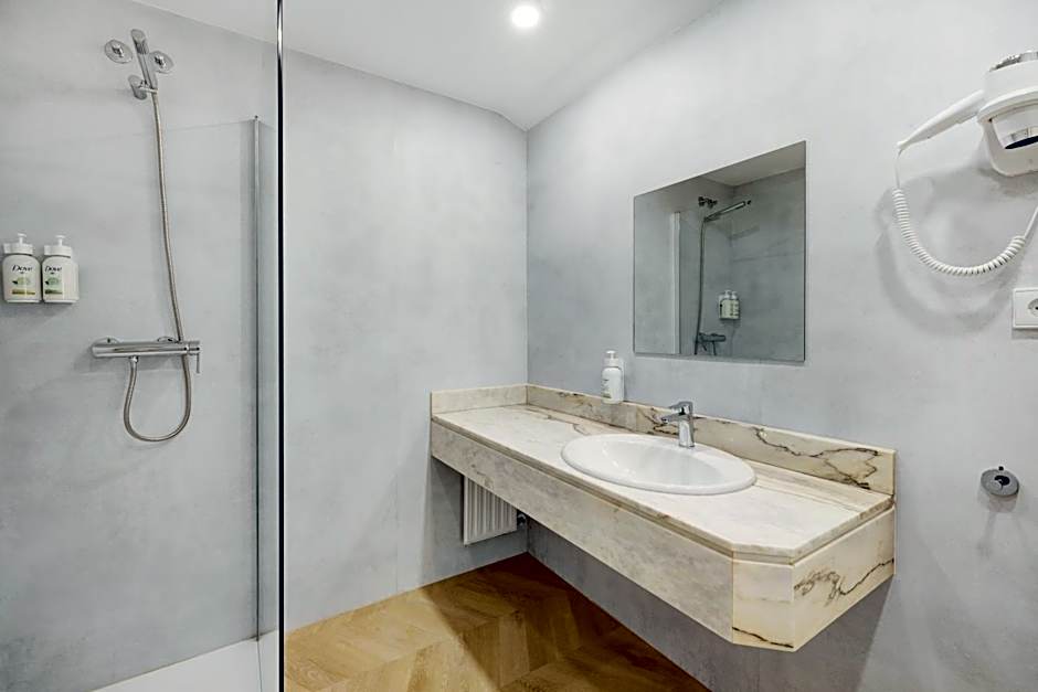 Offering free toiletries, this twin room includes a private bathroom with a walk-in shower, a bath and a bidet. The twin room offers a wardrobe, a safe deposit box, parquet floors, a flat-screen TV, as well as city views. The unit offers 2 beds.